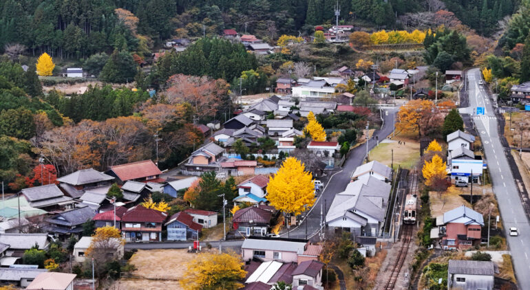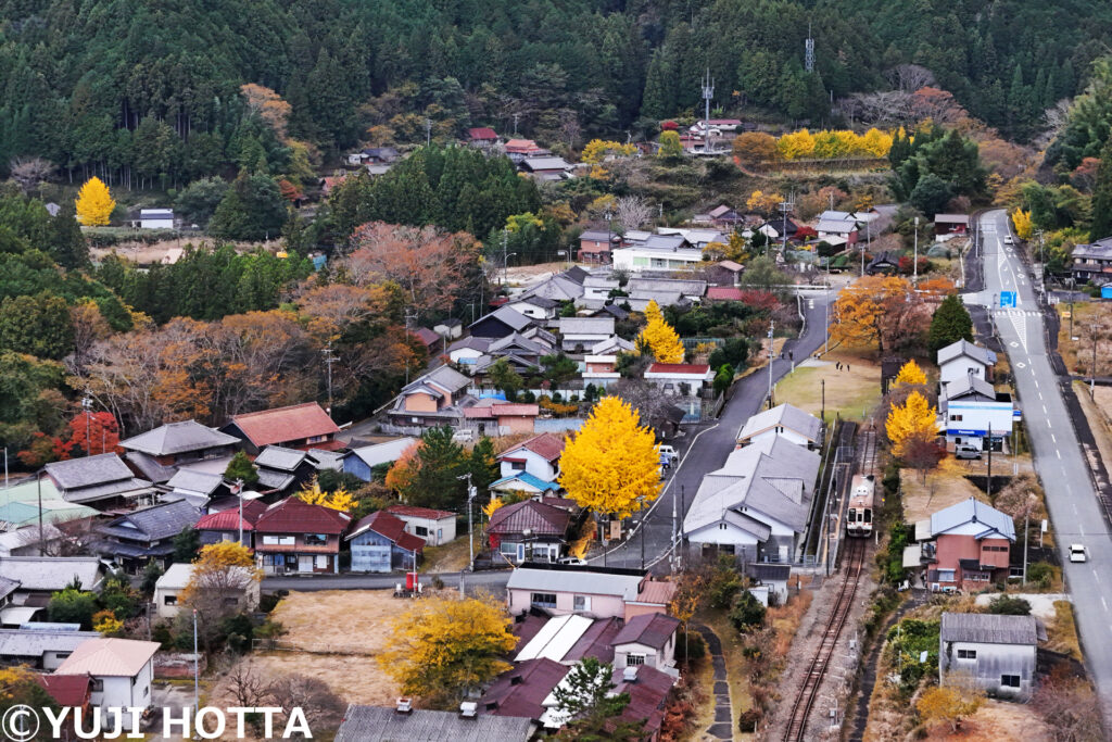 伊勢奥津◆伊勢奥津駅前から下ったところに大和と伊勢を結ぶ伊勢本街道があり、古来から多くの旅人が奥津宿を往来しました。この時期、列車から降りてぶらりとイチョウ狩りを楽しむのも趣があります。