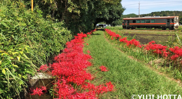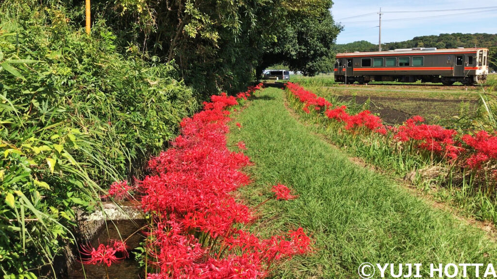 日本の原風景〜曼珠沙華 秋 伊勢大井◆秋のお彼岸の頃に咲いてくる曼殊沙華(彼岸花)。田んぼの畔(あぜ)などに咲きますが、草刈りのタイミングで一緒に刈られてしまうことがあるので、見れたらラッキーな日本の原風景です。 前の記事 次の記事 関連記事 とことめの里一志のコスモス畑 イチョウの季節 給水塔のある駅 イチョウ狩りから伊勢本街道へ 色彩のコントラスト 秋の真見橋りょう 名松線屈指の秋の絶景へ 紅葉の中に咲く桜 V字谷に輝く車体 コメント コメント ( 0 ) トラックバック ( 0 ) この記事へのコメントはありません。 この記事へのトラックバックはありません。 返信をキャンセルする。 名前( 必須 ) E-MAIL( 必須 ) - 公開されません - URL