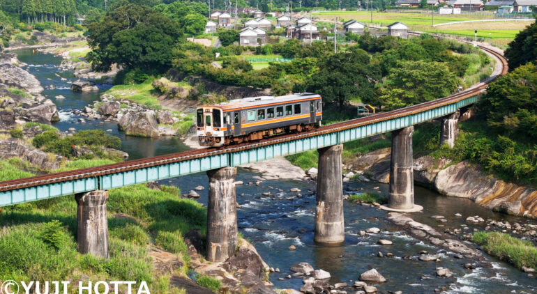 家城〜伊勢竹原◆雲出川に架かる真見橋りょうは緩やかにカーブしています。その行く先は滞在型農園「クラインガルテン」。滞在型の農園付き住宅で田舎暮らしの希望する人に人気があります。
