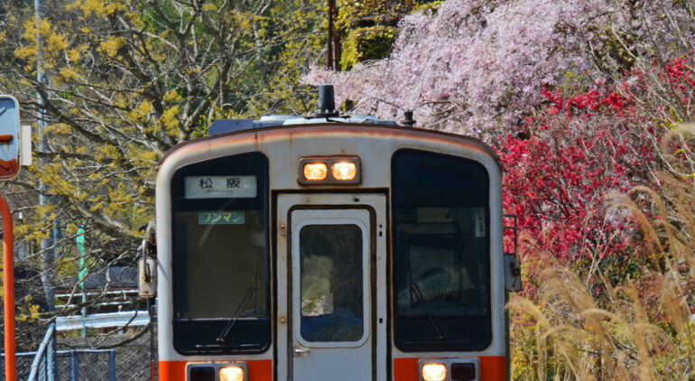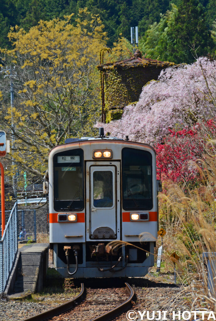 伊勢奥津◆伊勢奥津駅は終着駅。しだれ桜の向こうには給水塔が鎮座しています。