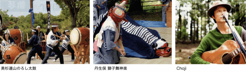 13:10〜13:40 美杉連山のろし太鼓 13:50〜14:10 丹生俣 獅子舞神楽 15:30〜16:00 Choji’s Live