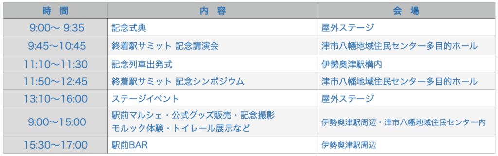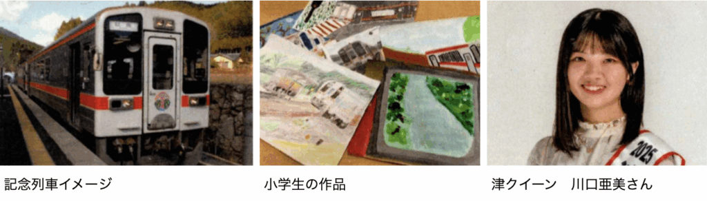 内 容:◆ロゴデザイン製作者の表彰◆記念列車の出発式◆車内には津市内の小学生から応募いただいた作品を展示◆津クイーン川口亜美さんと津市長が一日駅長として出発合図