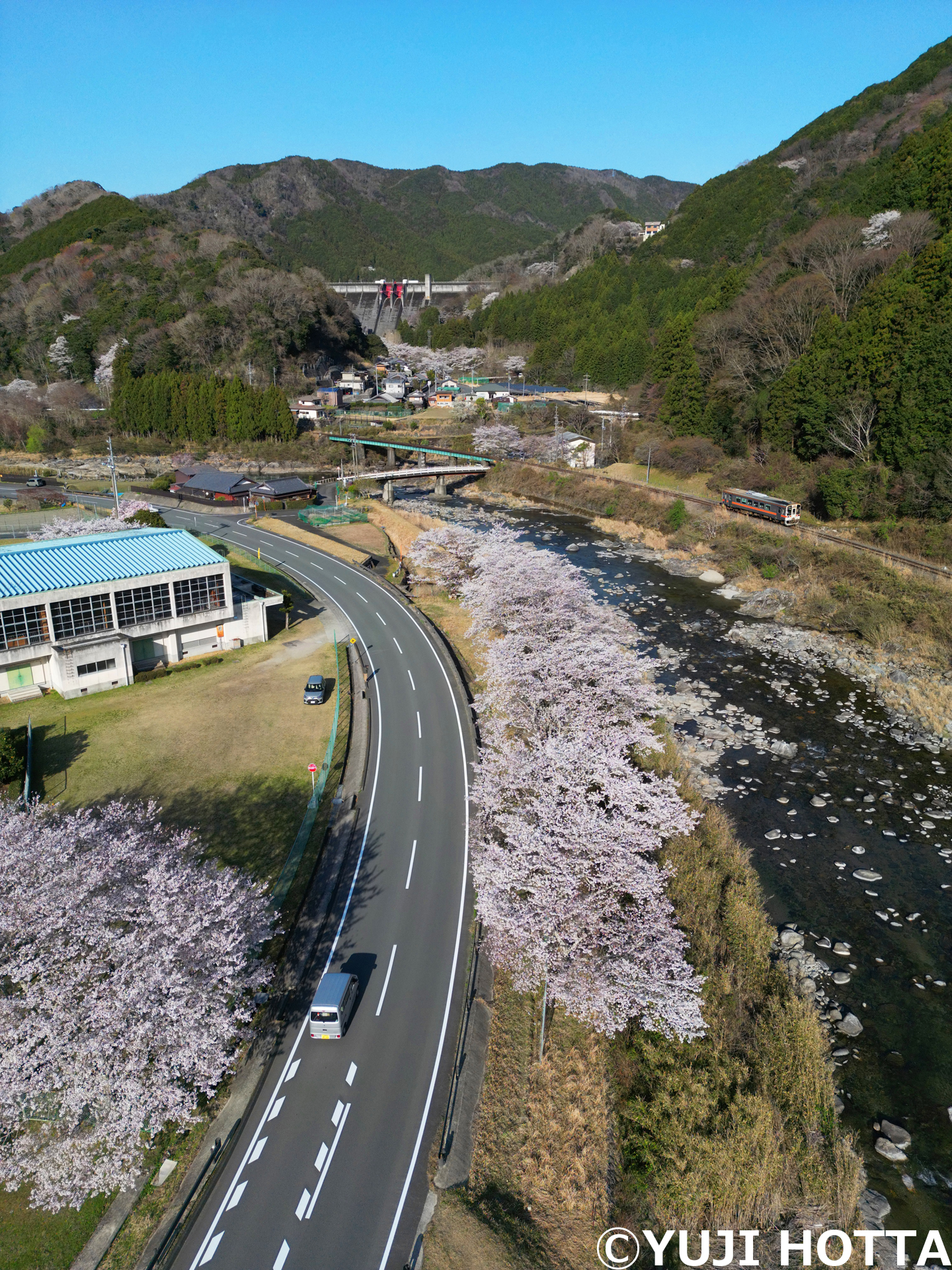 伊勢竹原〜伊勢鎌倉◆三重県道15号久居美杉線と雲出川に沿って植えられたソメイヨシノの並木…
