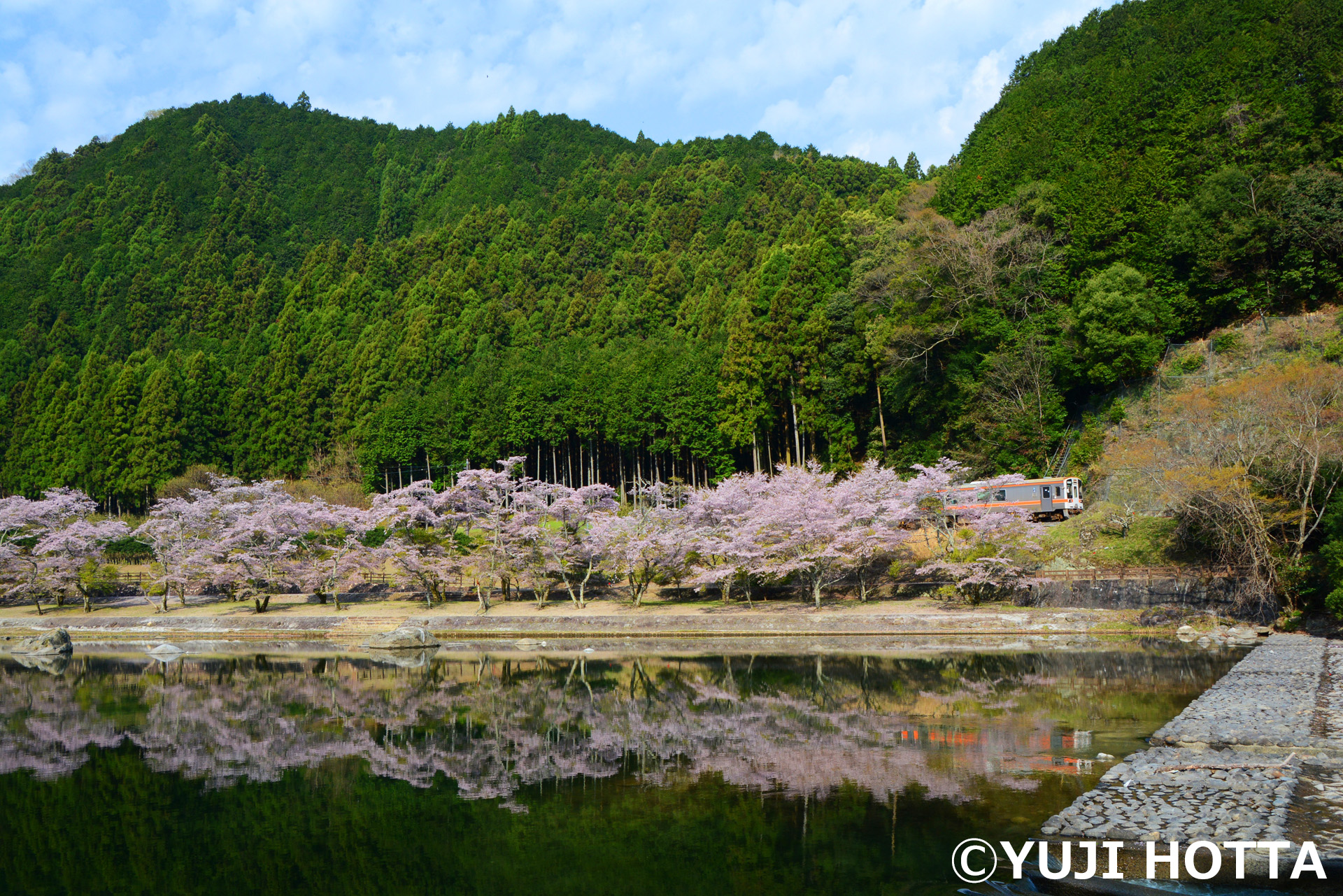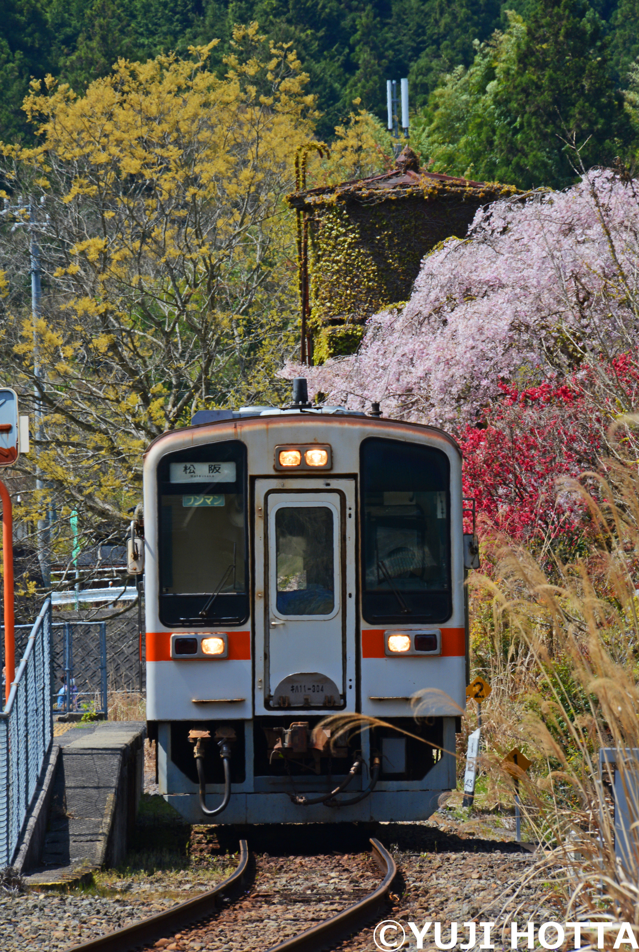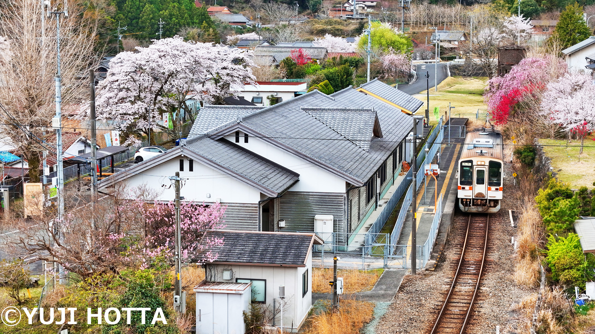 伊勢奥津◆春爛漫の伊勢奥津駅周辺。年によっては梅、ソメイヨシノ、しだれ桜、花桃が同時に咲…